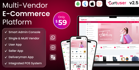 CartUser Multi-Vendor E-commerce – Complete eCommerce Mobile App, Web, Admin and Seller Panel