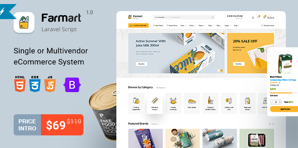 Farmart – Single or Multivendor Laravel eCommerce System is a versatile and feature-rich platform designed for building and managing single or multi-vendor online marketplaces. Here’s a list of its features: