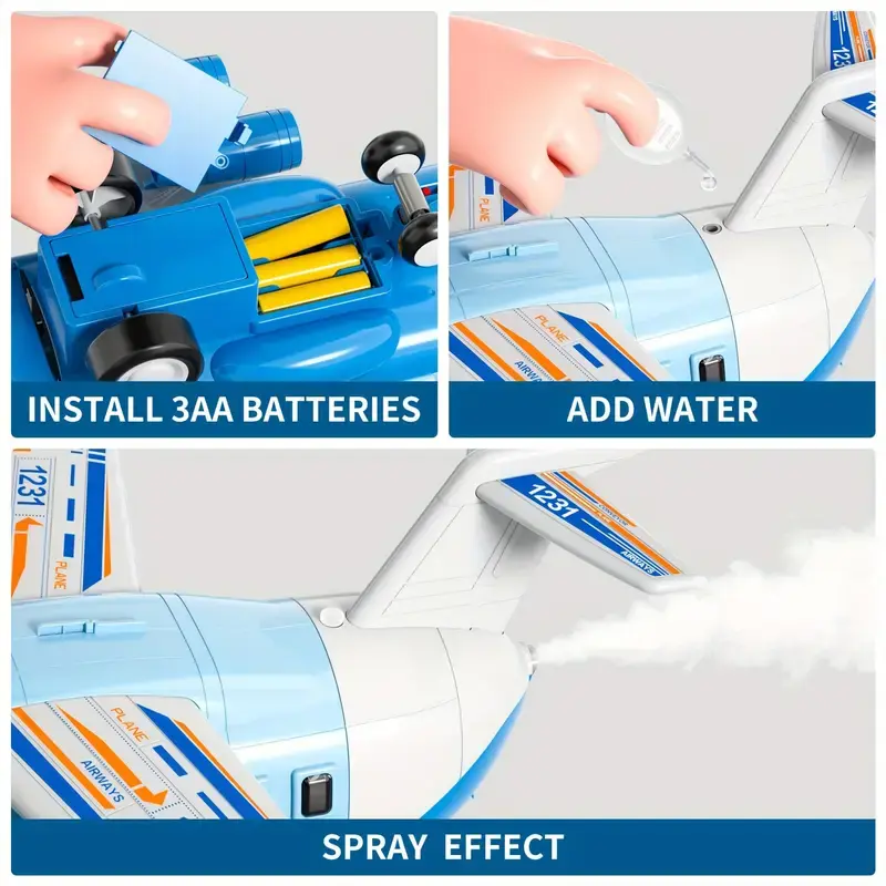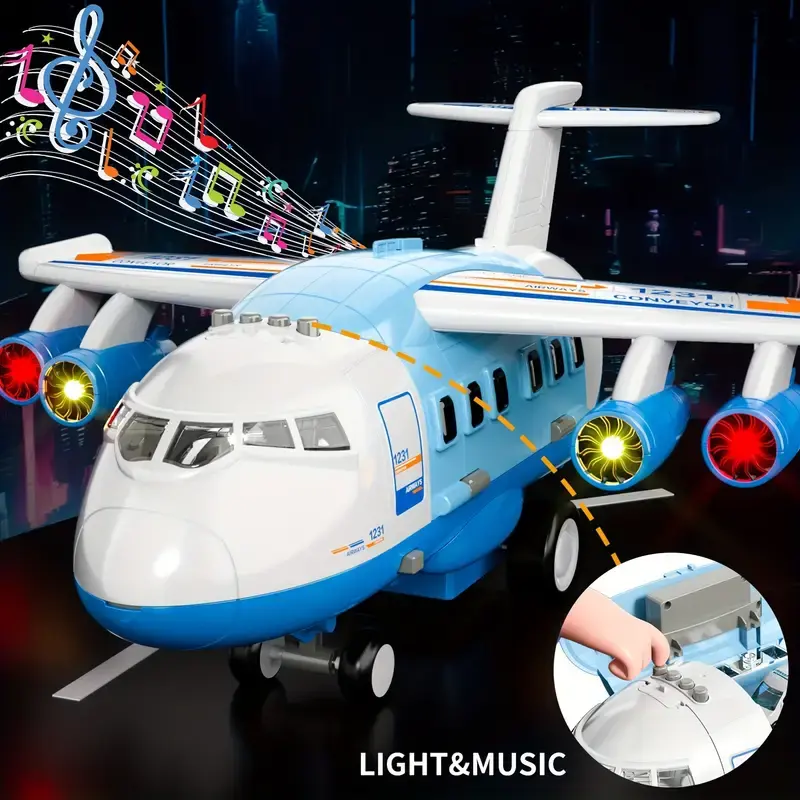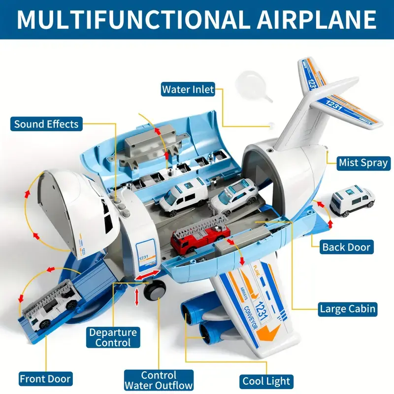 Interactive Blue Transport Spray Airplane Toy with 10 Vehicles | Large Role-Play Construction Vehicle Carrier for Kids Ages 3-7, Develops Motor Skills & Creativity